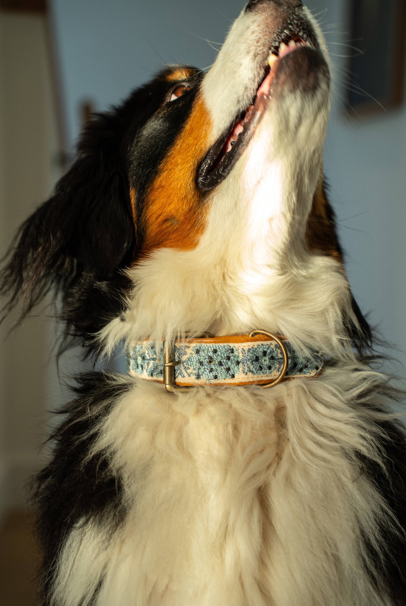 Handmade in India, our colourful dog collars are made with durable leather and embroidered cotton designs. Each beautifully crafted design is available in four doggy sizes ranging from Chihuahua to Bernese Mountain Dog.
