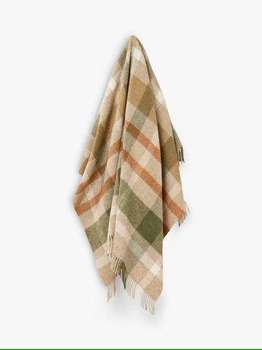 British Wool Throw, Terracotta/Green Check