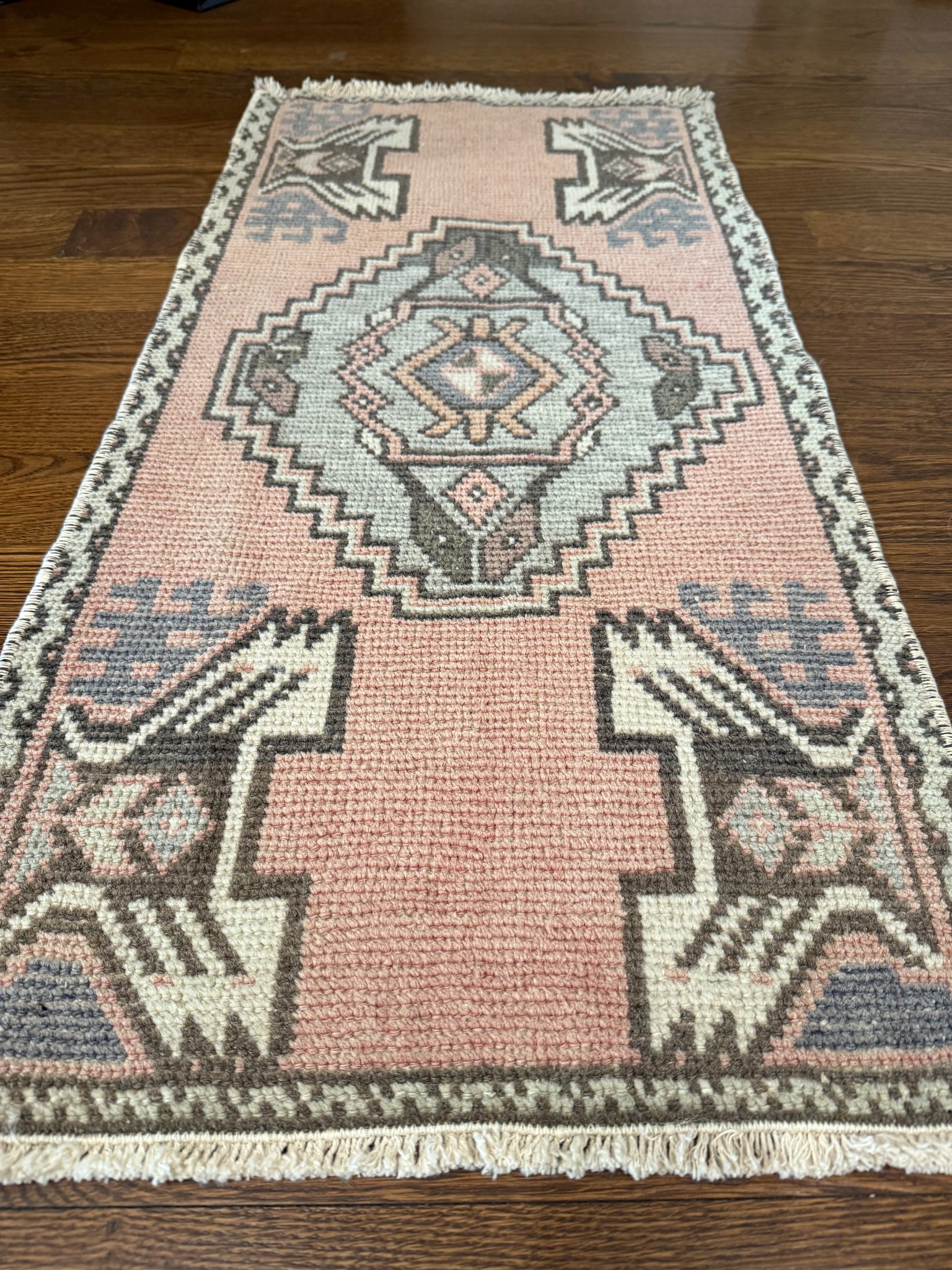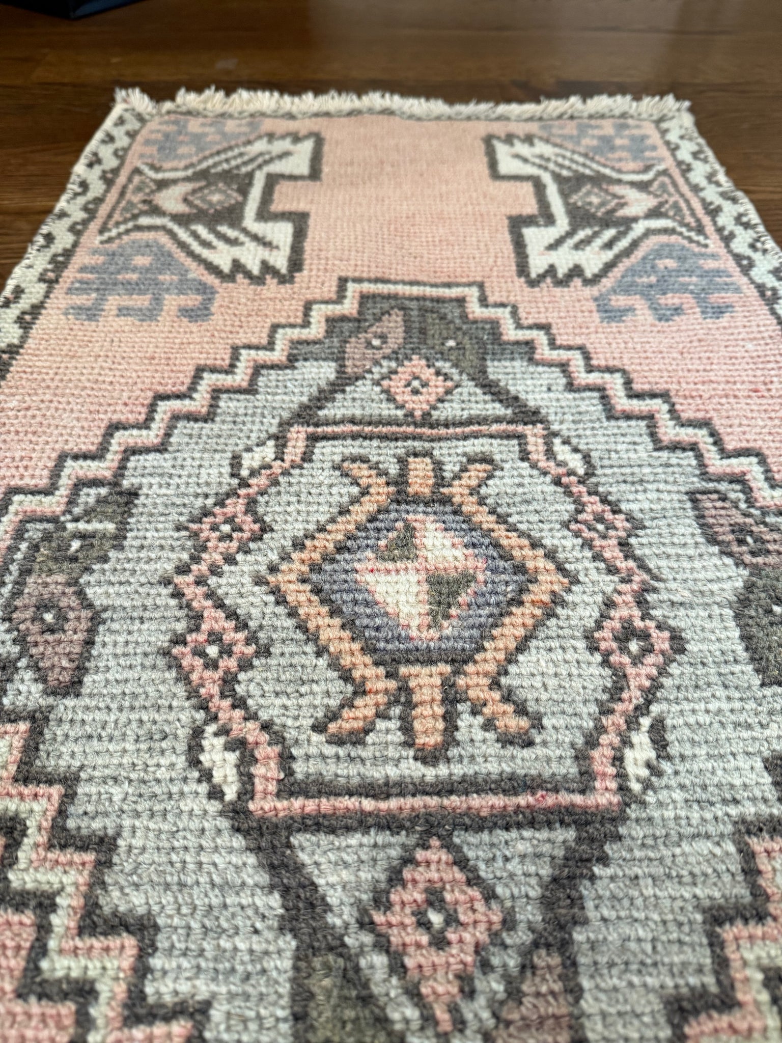 Please note: Due to the nature of wool fibers and natural dyes, a rug’s appearance will vary under different lighting conditions (e.g. brighter colors are revealed in direct sunlight, but may appear muted or dark in shadowy spaces). As they have been woven by hand using natural materials, vintage rugs are rarely perfectly symmetrical in pattern or size, lending each piece a unique, one-of-a-kind character.