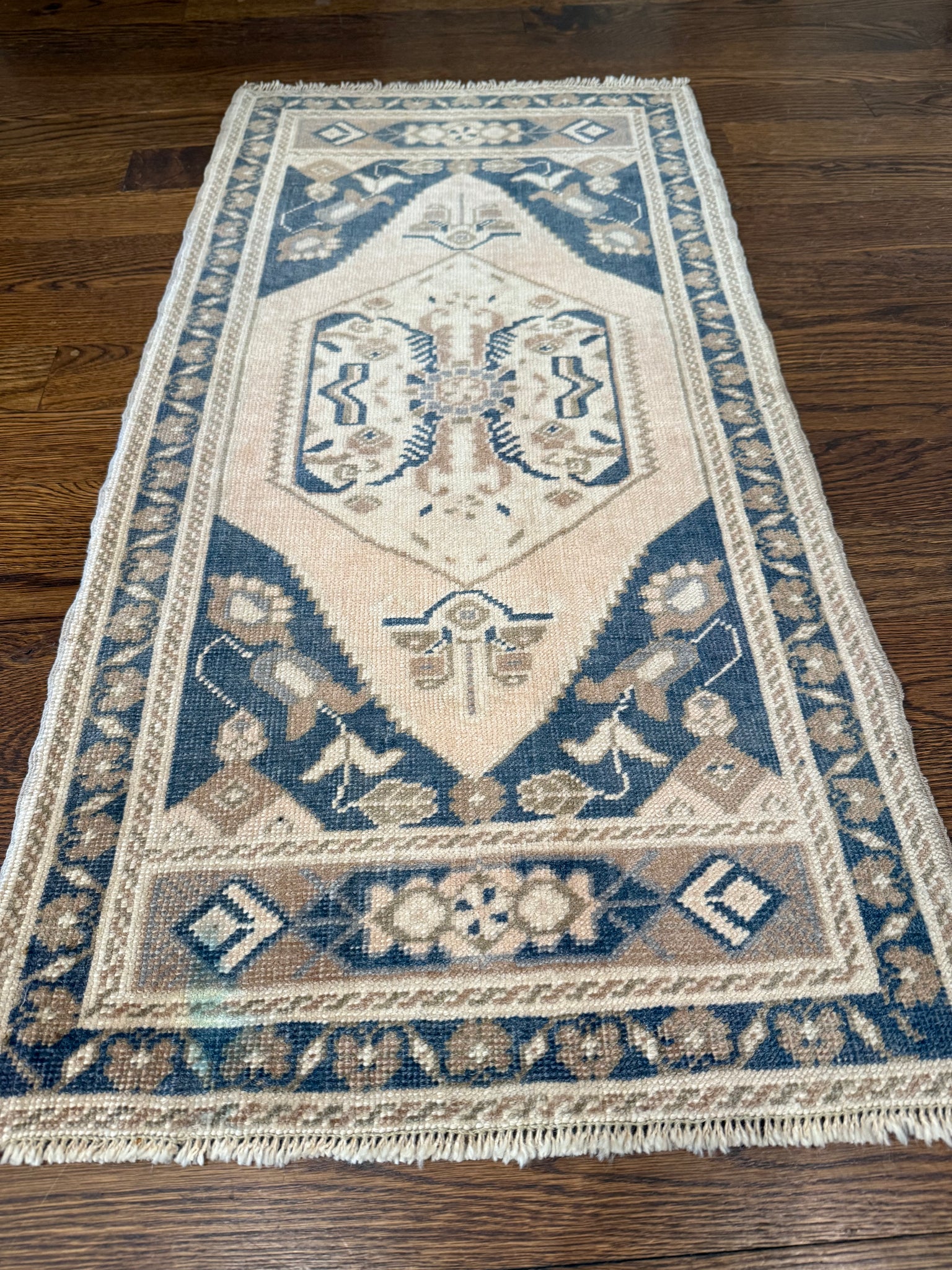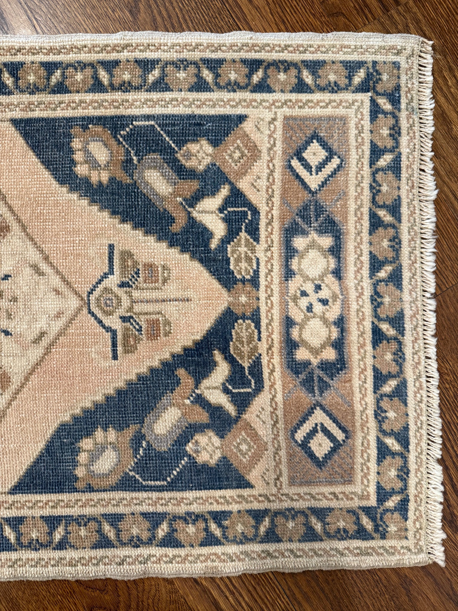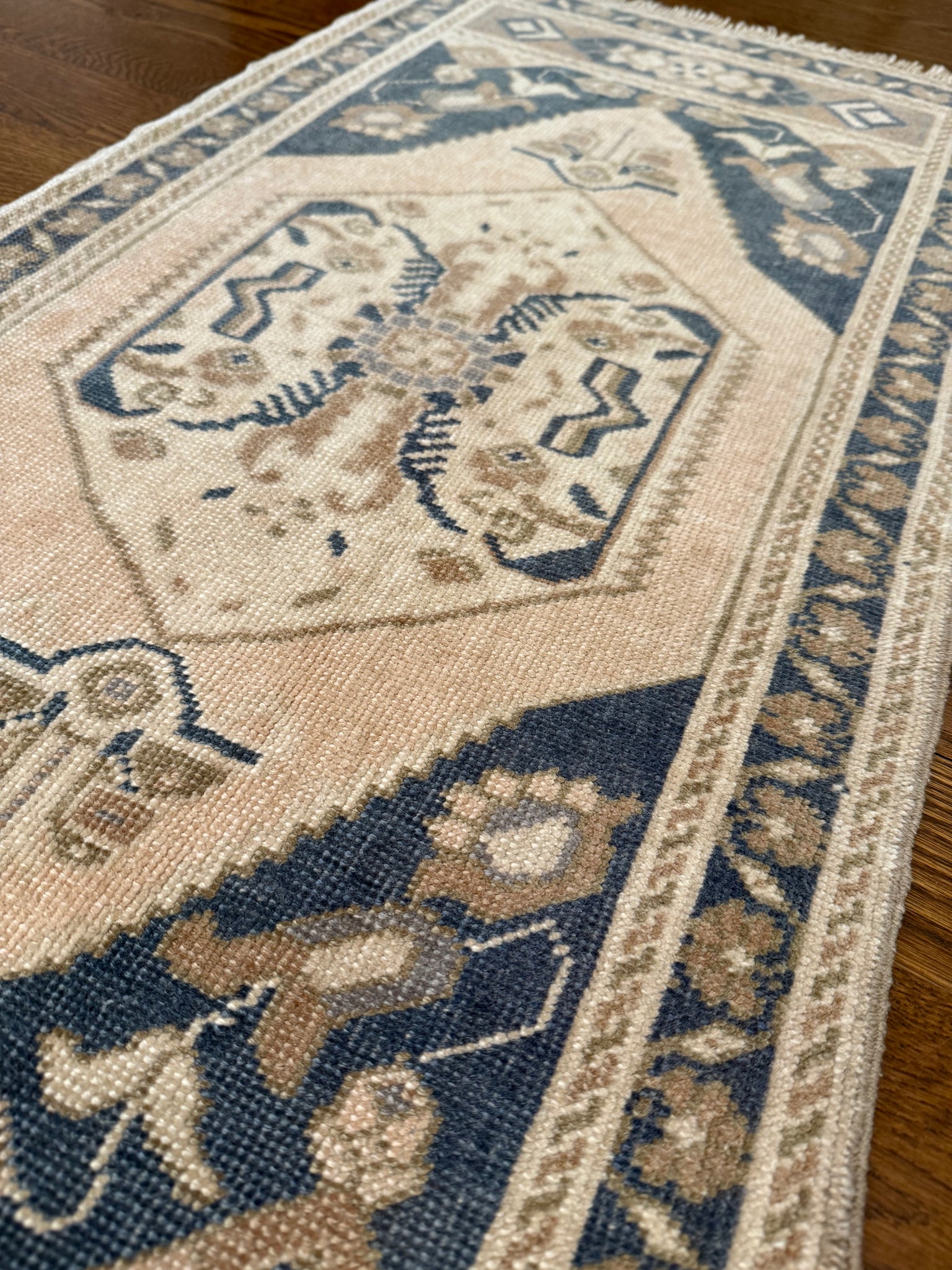 Please note: Due to the nature of wool fibers and natural dyes, a rug’s appearance will vary under different lighting conditions (e.g. brighter colors are revealed in direct sunlight, but may appear muted or dark in shadowy spaces). As they have been woven by hand using natural materials, vintage rugs are rarely perfectly symmetrical in pattern or size, lending each piece a unique, one-of-a-kind character.