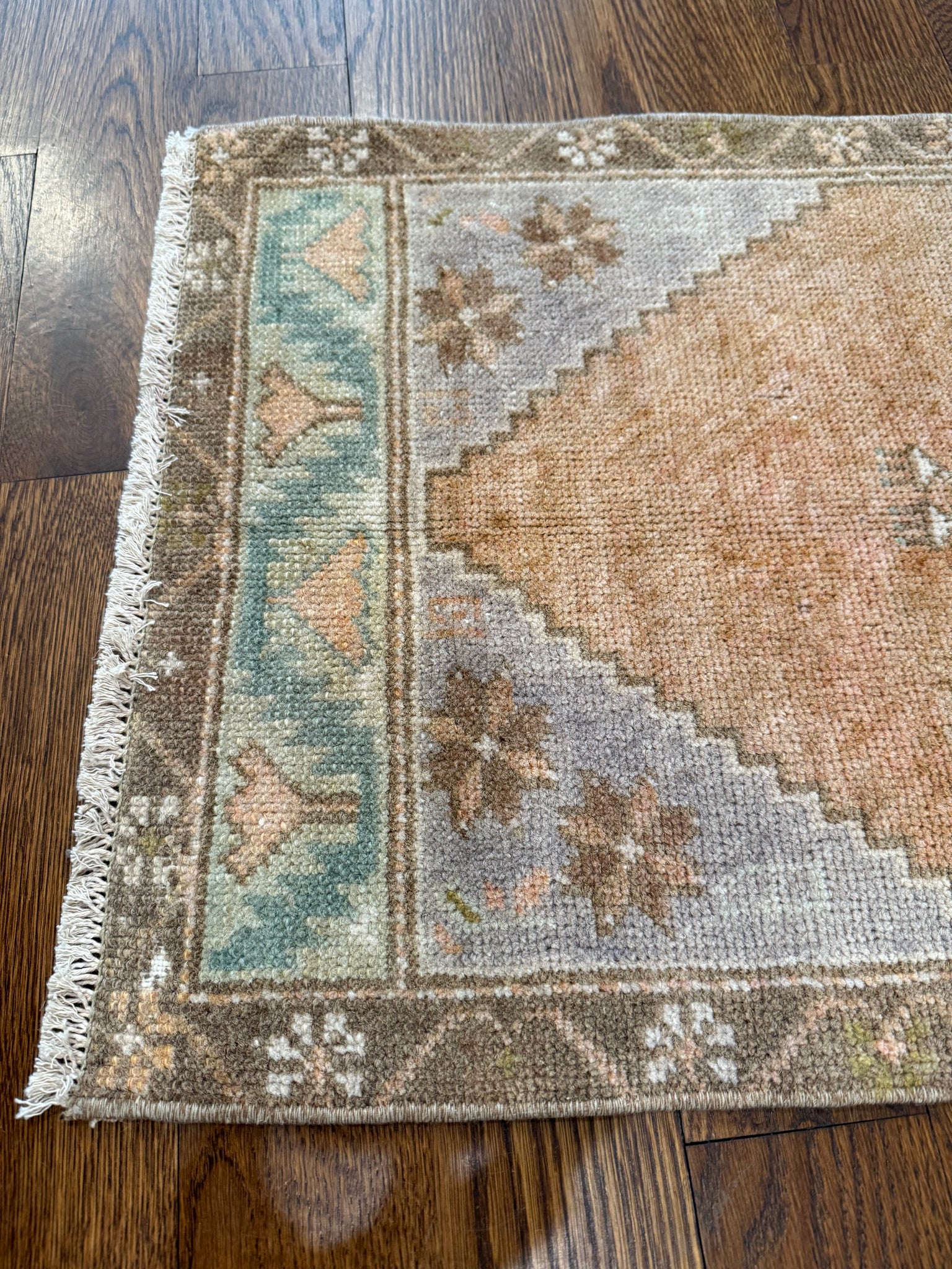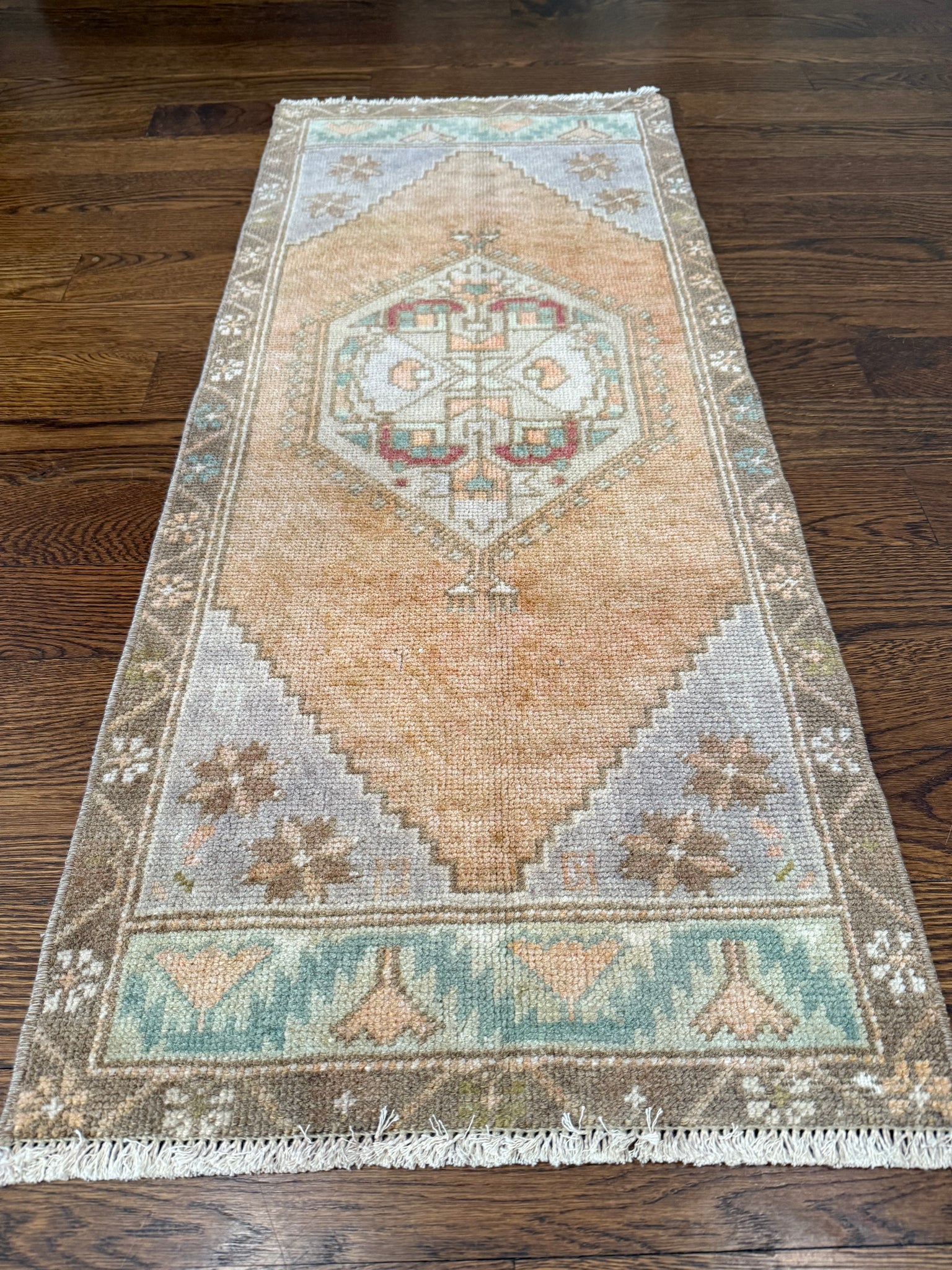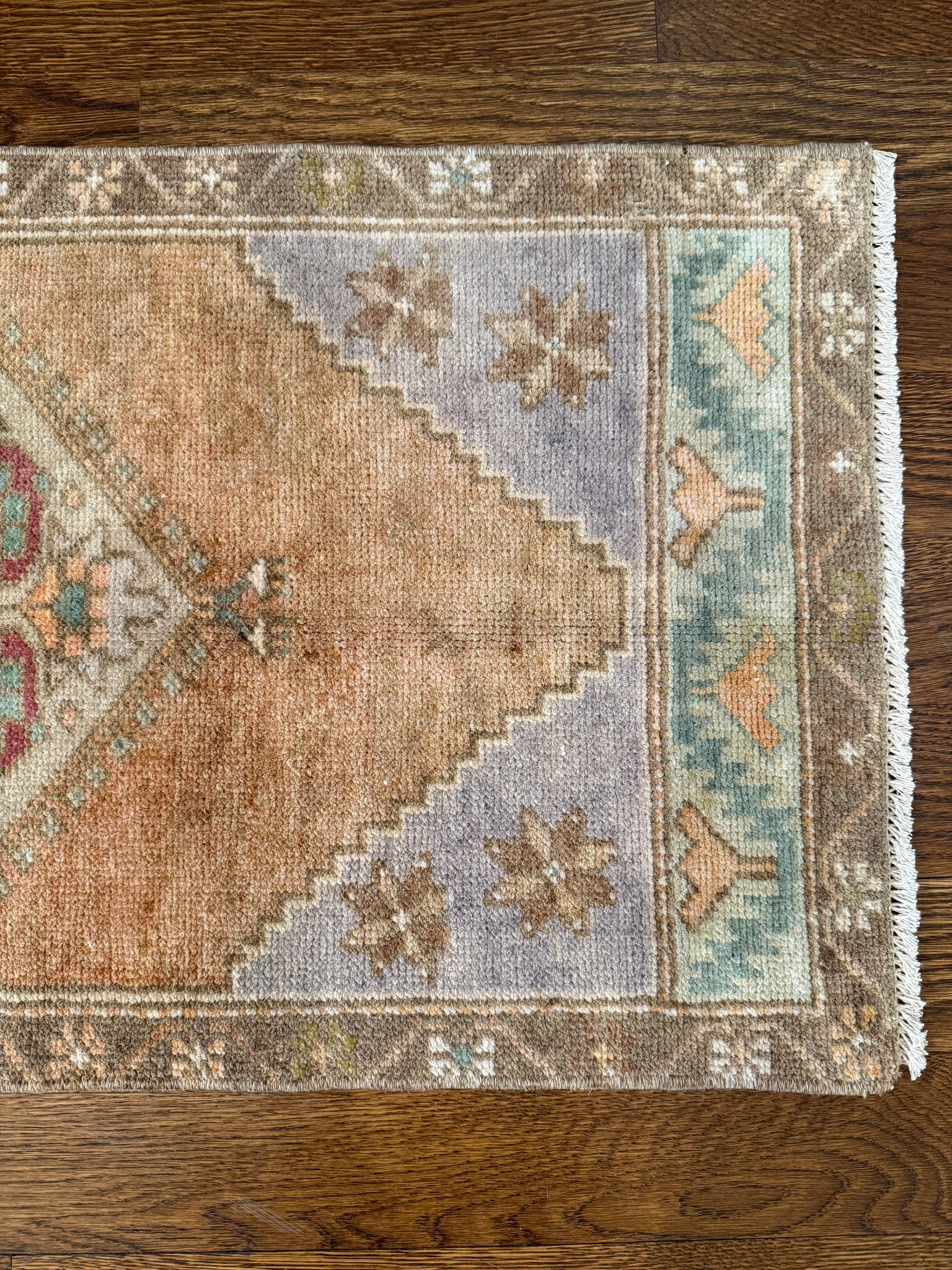 Please note: Due to the nature of wool fibers and natural dyes, a rug’s appearance will vary under different lighting conditions (e.g. brighter colors are revealed in direct sunlight, but may appear muted or dark in shadowy spaces). As they have been woven by hand using natural materials, vintage rugs are rarely perfectly symmetrical in pattern or size, lending each piece a unique, one-of-a-kind character.