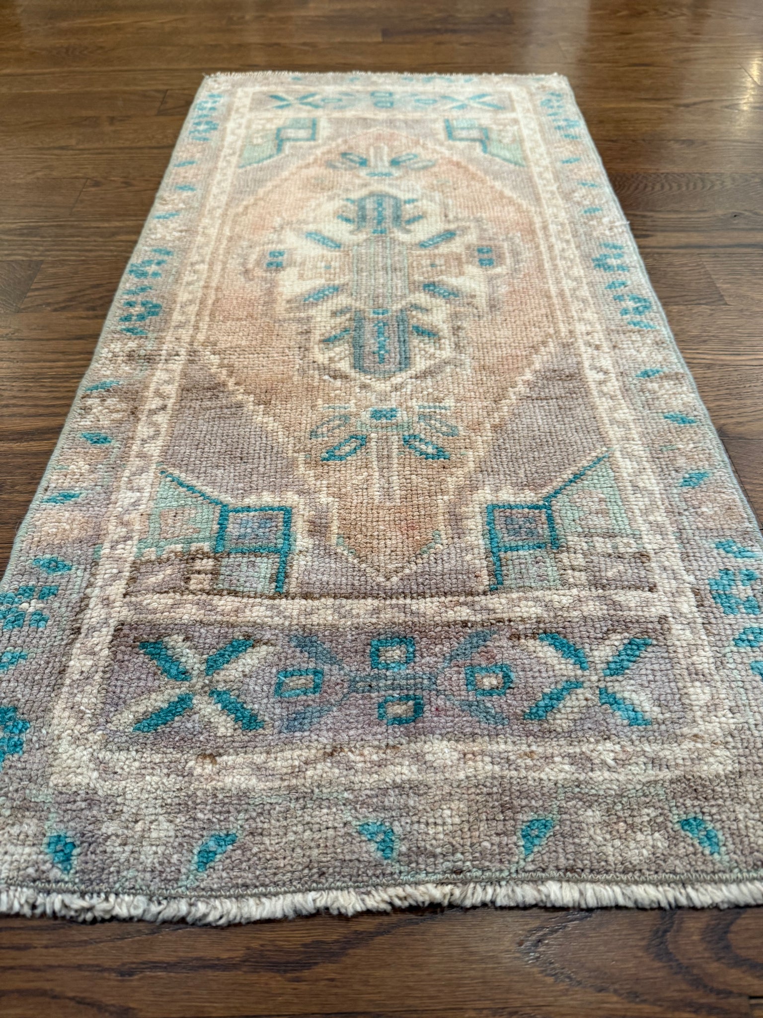 Please note: Due to the nature of wool fibers and natural dyes, a rug’s appearance will vary under different lighting conditions (e.g. brighter colors are revealed in direct sunlight, but may appear muted or dark in shadowy spaces). As they have been woven by hand using natural materials, vintage rugs are rarely perfectly symmetrical in pattern or size, lending each piece a unique, one-of-a-kind character.
