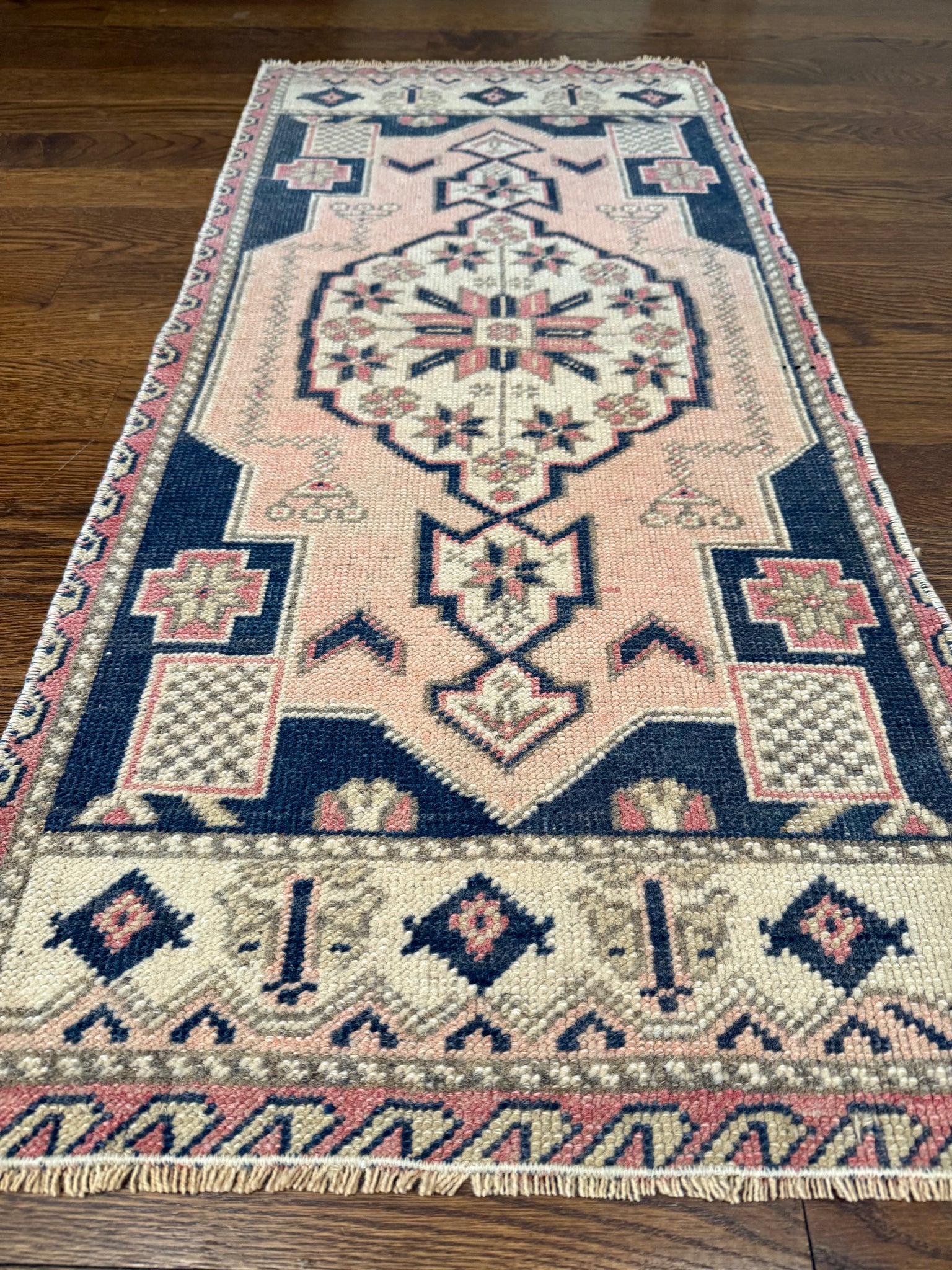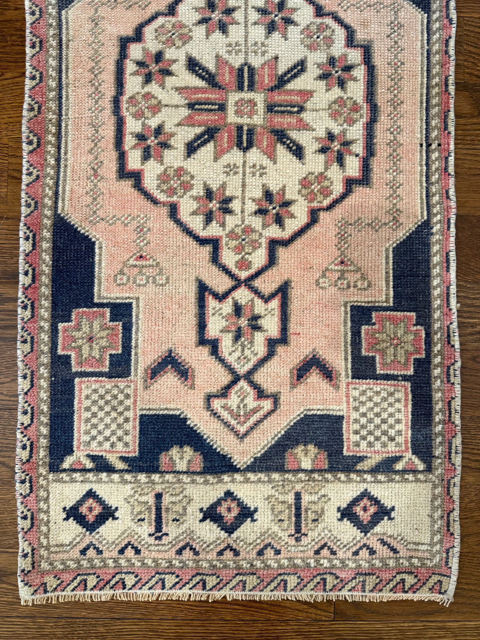 Please note: Due to the nature of wool fibers and natural dyes, a rug’s appearance will vary under different lighting conditions (e.g. brighter colors are revealed in direct sunlight, but may appear muted or dark in shadowy spaces). As they have been woven by hand using natural materials, vintage rugs are rarely perfectly symmetrical in pattern or size, lending each piece a unique, one-of-a-kind character.