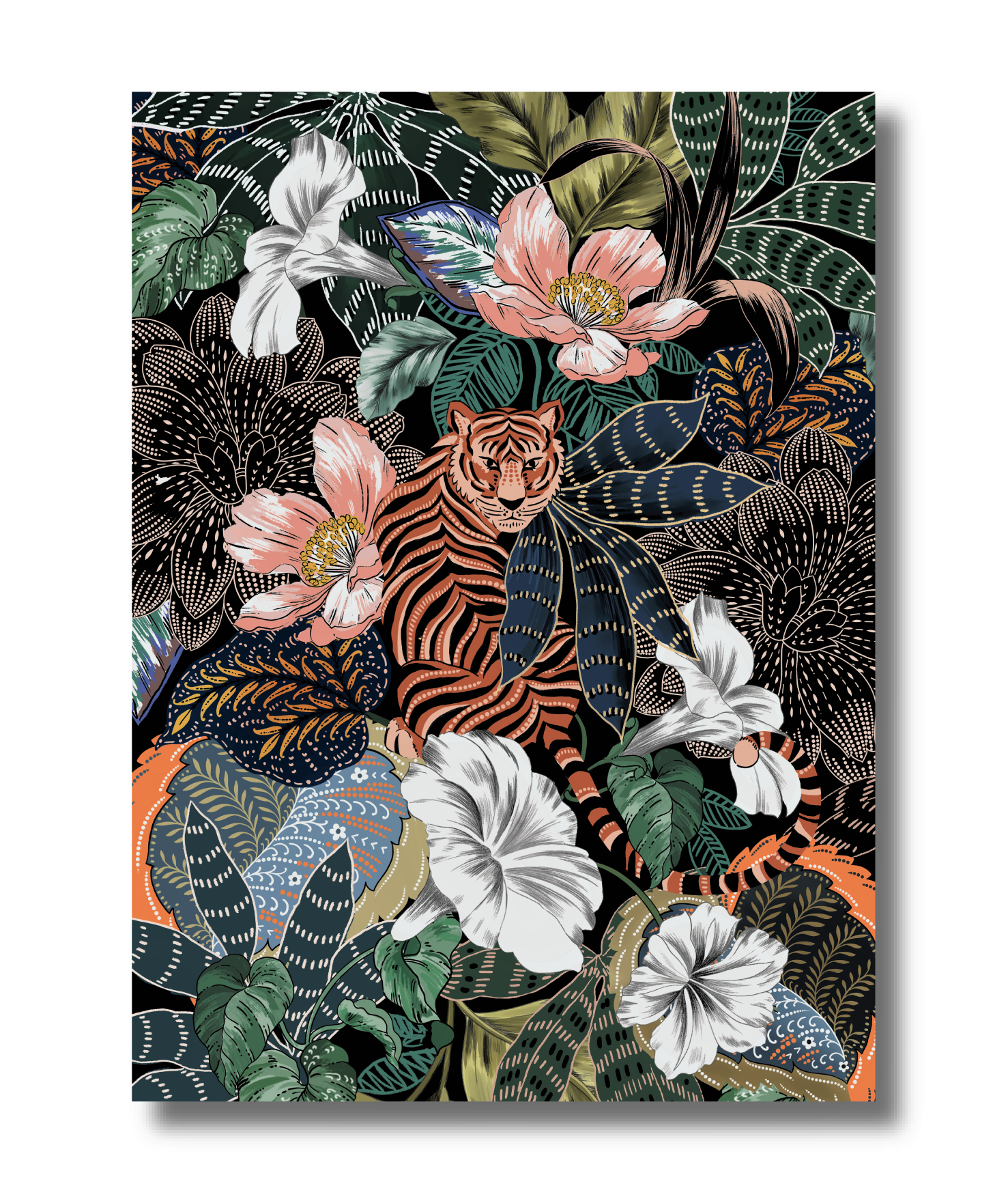 This lush imagery from artist Linsey Kelly offers a modern approach to color. Lively pinks and oranges emerge out from rich, earthy greens and deep navy blues.