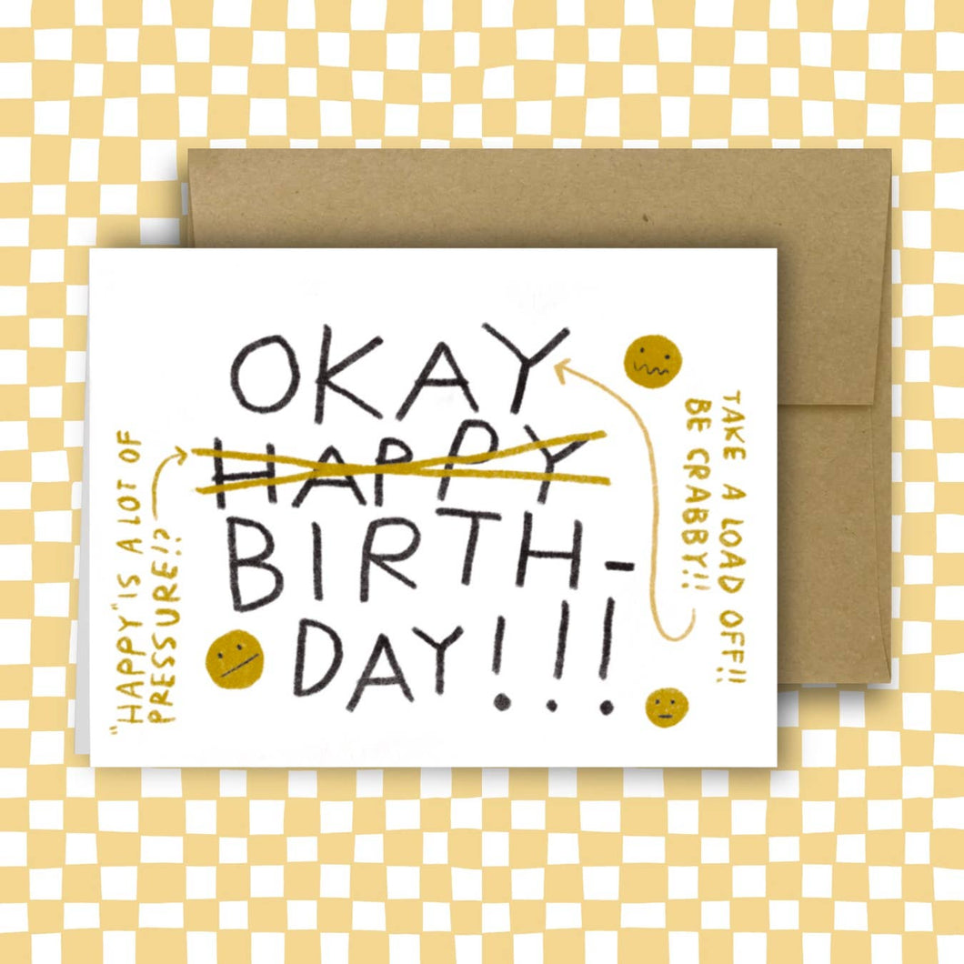 "HAPPY IS A LOT OF PRESSURE?!" OKAY Birthday Card