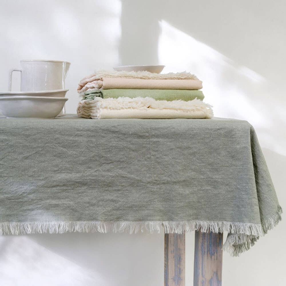 Striking the perfect balance between style and usability, our frayed edge cotton-linen blend tablecloths are pre-washed and easy to care for. Machine wash on gentle cycle.