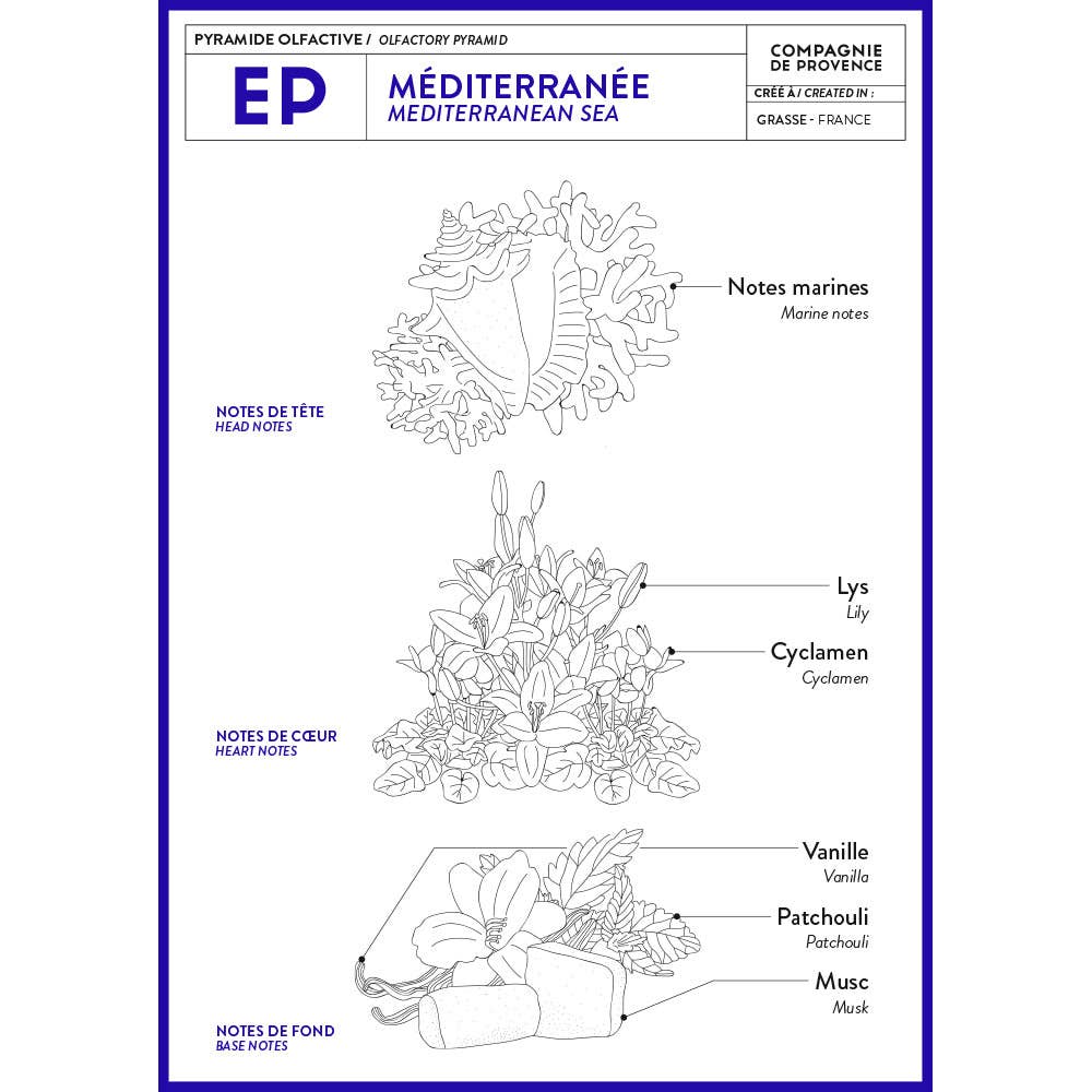 The soothing scent, created in fragrance capital Grasse, features the freshness of sea spray with delicate scents of sunny flowers.