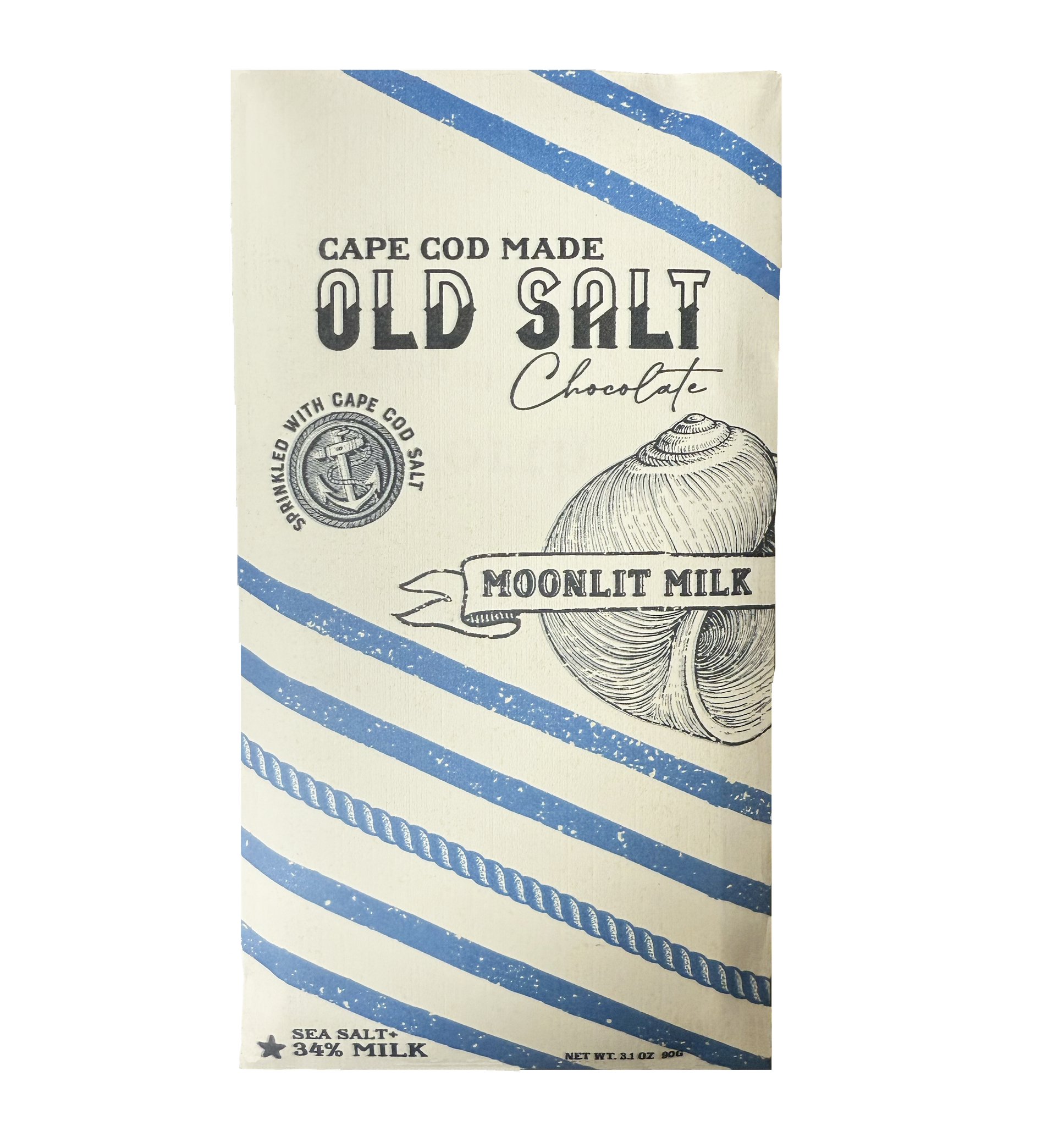 34% Belgian milk chocolate hand sprinkled with Cape Cod sea salt.